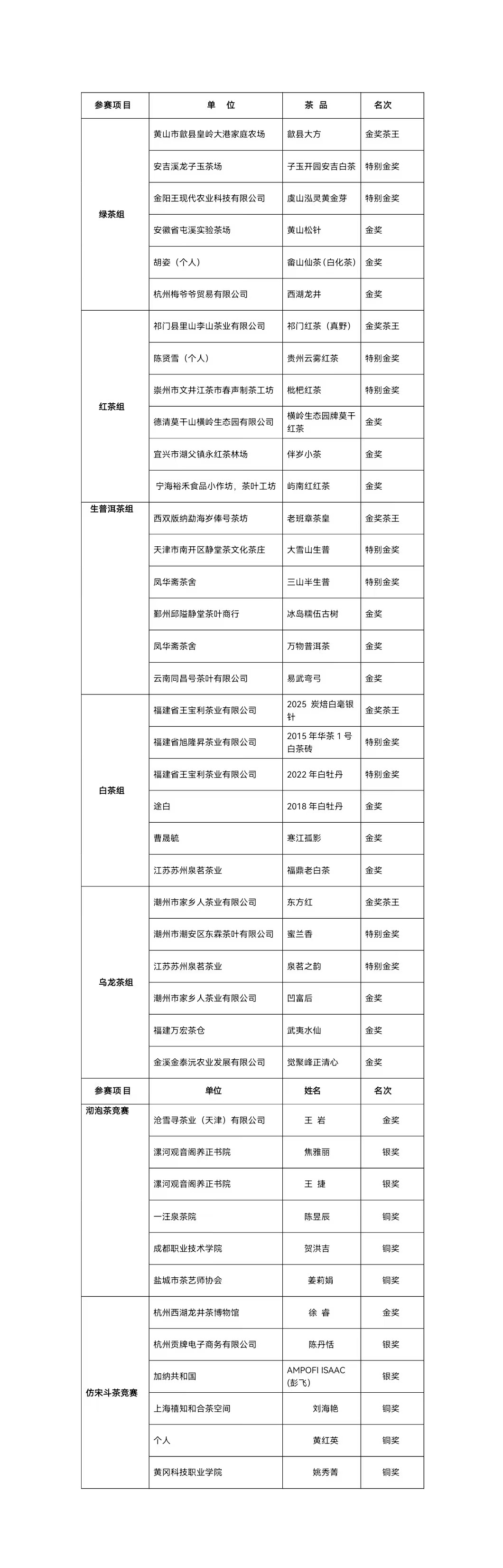 本次昆山赛事设置七大竞赛区域,历经三天精彩角逐,绿茶组、红茶组、生普洱茶组、乌龙茶组、白茶组、沏泡茶竞赛、仿宋斗茶竞赛等奖项各归其主。