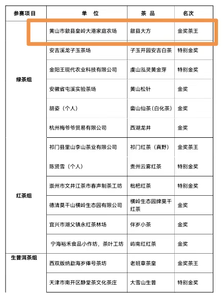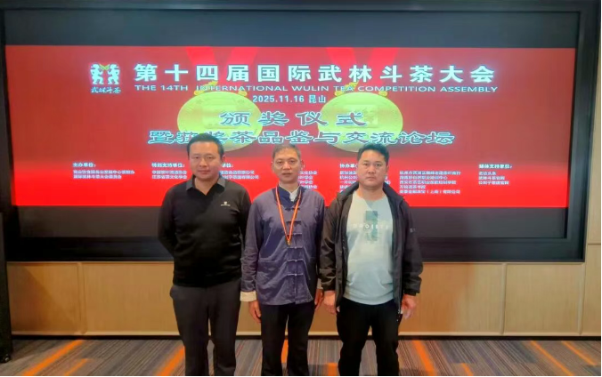 捷报传来!2025年11月15日,第十四届国际武林斗茶大会在昆山隆重启幕。作为全国性茶竞技盛会,本次大会吸引了国内外230余家茶企与选手参赛——覆盖新疆、海南、云南等20余个省市,更有加纳等国家代表队同台竞技。历经三天激烈角逐,歙县三阳镇非遗传承人洪道广手工制作的“歙县大方”茶脱颖而出,拿下绿茶组第一名,摘得“金奖茶王”荣誉称号!