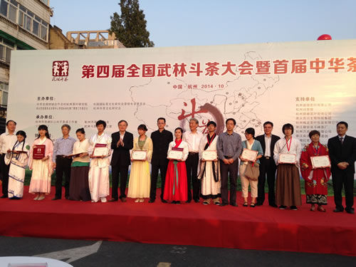为促进茶界互动交流,致力打造国内最有影响力的斗茶盛会,“第四届全国武林斗茶大会暨首届中华茶奥会”在杭州市江干区凯旋路茶都名园盛大开幕,来自全国22个省(市)自治区及德国、加拿大的国际茶人共456名选手角逐12个金奖、28个银奖、48个优秀奖。大赛有仿宋斗茶、斗沏泡茶能力、斗鉴别茶汤能力、斗茶品、茶汤对茶样五个大类。经过整整一天的斗茶比赛,下午四时颁布了获奖名单,艾伦德等12名选手获得了金奖。